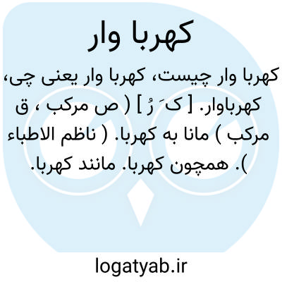 لغت نامه دهخدا کهرباوار. [ ک َ رُ ] ( ص مرکب، ق مرکب ) مانا به کهربا. ( ناظم الاطباء ). همچون کهربا. مانند کهربا.