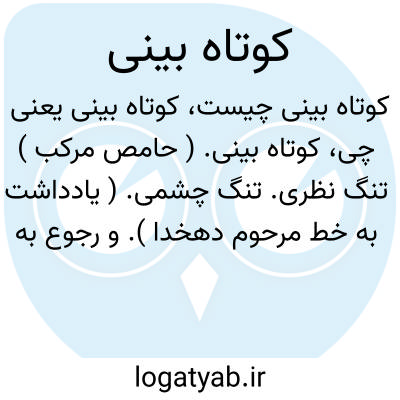 کوتاه بینی. ( حامص مرکب ) تنگ نظری. تنگ چشمی. ( یادداشت به خط مرحوم دهخدا ). و رجوع به کوتاه بین شود.