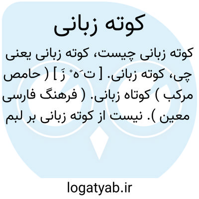 کوته زبانی. [ ت َه ْ زَ ] ( حامص مرکب ) کوتاه زبانی. ( فرهنگ فارسی معین ).