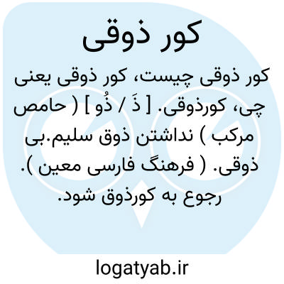 کورذوقی. [ ذَ / ذُو ] ( حامص مرکب ) نداشتن ذوق سلیم.بی ذوقی. ( فرهنگ فارسی معین ). رجوع به کورذوق شود.