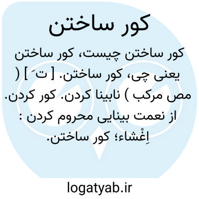 کور ساختن. [ ت َ ] ( مص مرکب ) نابینا کردن. کور کردن. از نعمت بینایی محروم کردن: اِغْشاء؛ کور ساختن. تعمیة؛ کور ساختن. ( منتهی الارب ). و رجوع به کور کردن شود.