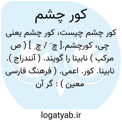 کورچشم.[ چ َ / چ ِ ] ( ص مرکب ) نابینا را گویند. ( آنندراج ). نابینا. کور. اعمی. ( فرهنگ فارسی معین ):