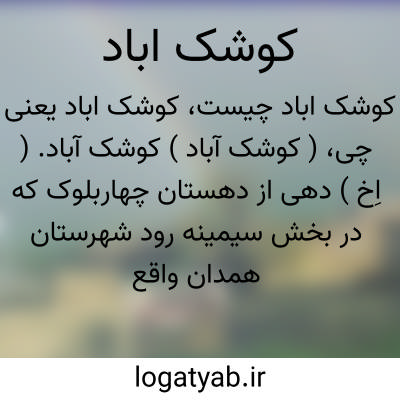 ( کوشک آباد ) کوشک آباد. ( اِخ ) دهی از دهستان چهاربلوک که در بخش سیمینه رود شهرستان همدان واقع است و 910 تن سکنه دارد. ( از فرهنگ جغرافیایی ایران ج 5 ).
