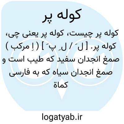 کوله پر. [ ل َ / ل ِ پ َ ] ( اِ مرکب ) صمغ انجدان سفید که طیب است و صمغ انجدان سیاه که به فارسی کماة خوانند منتن است و از حلتیت به عمل می آید که به فارسی انگژد و انغوژه گویند و به زبان اصفهانی انگشت کنده... ( از آنندراج ) ( از انجمن آرا ). اسم فارسی انجدان است. ( فهرست مخزن الادویه ). صمغ انگدان سفید. ( فرهنگ فارسی معین ).