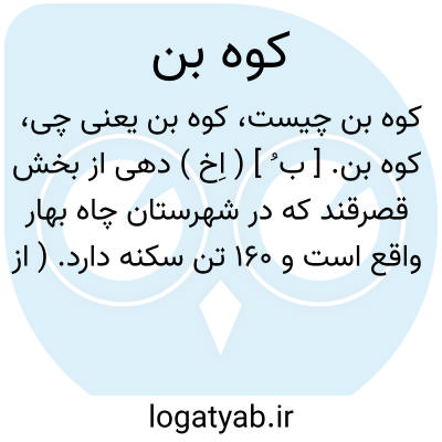کوه بن. [ ب ُ ] ( اِخ ) دهی از بخش قصرقند که در شهرستان چاه بهار واقع است و 160 تن سکنه دارد. ( از فرهنگ جغرافیایی ایران ج 8 ).