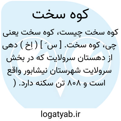 کوه سخت. [ س َ ] ( اِخ ) دهی از دهستان سرولایت که در بخش سرولایت شهرستان نیشابور واقع است و 808 تن سکنه دارد. ( از فرهنگ جغرافیایی ایران ج 9 ).