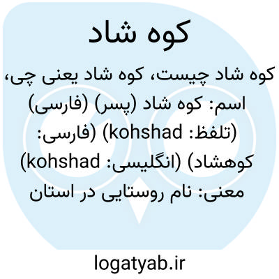 اسم: کوه شاد (پسر) (فارسی) (تلفظ: kohshad) (فارسی: کوهشاد) (انگلیسی: kohshad)