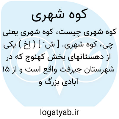 کوه شهری. [ ش َ ] ( اِخ ) یکی از دهستانهای بخش کهنوج که در شهرستان جیرفت واقع است و از 15 آبادی بزرگ و کوچک تشکیل شده است. مرکز دهستان قریه گر می باشد و 1280 تن سکنه دارد. ( از فرهنگ جغرافیایی ایران ج 8 ).