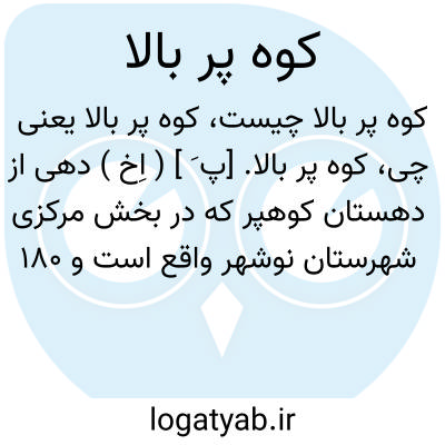 کوه پر بالا. [پ َ ] ( اِخ ) دهی از دهستان کوهپر که در بخش مرکزی شهرستان نوشهر واقع است و 180 تن سکنه دارد. بین کوهپربالا و پایین روی تپه ای معصوم زاده ای وجود دارد که بنای آن قدیمی است. ( از فرهنگ جغرافیایی ایران ج 3 ).