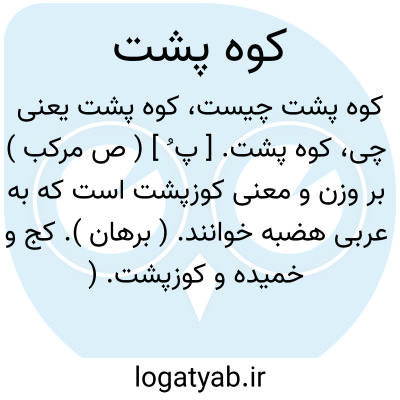 کوه پشت. [ پ ُ ] ( ص مرکب ) بر وزن و معنی کوزپشت است که به عربی هضبه خوانند. ( برهان ). کج و خمیده و کوزپشت. ( ناظم الاطباء ). ظاهراً مصحف «کوزپشت » است، ولی لغتاً صحیح می نماید. ( از حاشیه برهان چ معین ). || قوی پشت. ( از فرهنگ فارسی معین ).