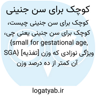 {small for gestational age, SGA} [تغذیه] ویژگی نوزادی که وزن آن کمتر از ده درصد وزن استاندارد سنش باشد