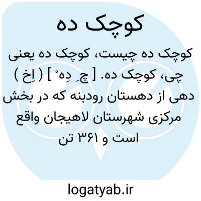 لغت نامه دهخدا کوچک ده. [ چ ِ دِه ْ ] ( اِخ ) دهی از دهستان رودبنه که در بخش مرکزی شهرستان لاهیجان واقع است و 361 تن سکنه دارد. ( از فرهنگ جغرافیایی ایران ج 2 ).