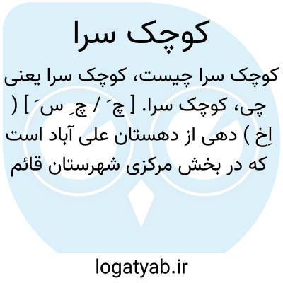 کوچک سرا. [ چ َ / چ ِ س َ ] ( اِخ ) دهی از دهستان علی آباد است که در بخش مرکزی شهرستان قائم شهر و در 1500گزی شمال غربی این شهر قرار دارد. در دشت واقع و هوای آن معتدل و مرطوب است. محصول آن برنج، غله،نیشکر، پنبه، کنجد و ابریشم است. این ده دارای 2690تن سکنه می باشد. ( از فرهنگ جغرافیایی ایران ج 3 ).