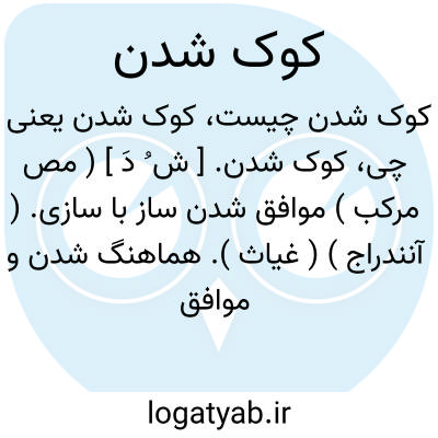 کوک شدن. [ ش ُ دَ ] ( مص مرکب ) موافق شدن ساز با سازی. ( آنندراج ) ( غیاث ). هماهنگ شدن و موافق گشتن ساز و آواز. ( ناظم الاطباء ). آهنگ یافتن سازها. میزان شدن آلات موسیقی. ( فرهنگ فارسی معین ). || منظم گشتن حرکات دستگاه ساعت به وسیله پیچاندن فنر مخصوص. ( فرهنگ فارسی معین ). جمع شدن فنر و وسایل کوکی بوسیله کلید برای کار کردن آن. ( از فرهنگ لغات عامیانه جمالزاده ). || در تداول عامه، از جا دررفتن. متغیر شدن. ( فرهنگ فارسی معین ). خشمناک شدن. به خشم آمدن. ( یادداشت به خط مرحوم دهخدا ). عصبانی شدن و از کوره دررفتن. ( فرهنگ لغات عامیانه جمالزاده ). || بحرف آمدن شخص ساکت. ( از ناظم الاطباء ).