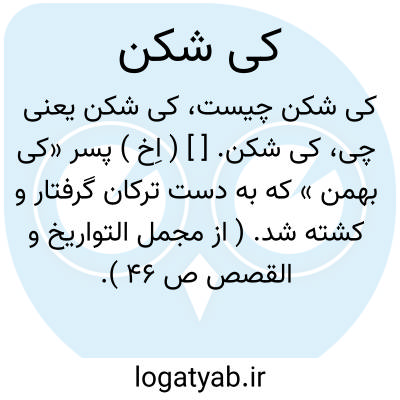 کی شکن. [ ] ( اِخ ) پسر «کی بهمن » که به دست ترکان گرفتار و کشته شد. ( از مجمل التواریخ و القصص ص 46 ).