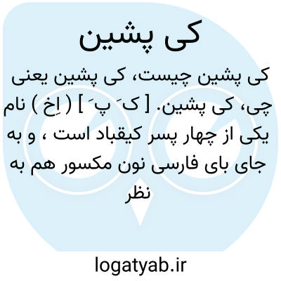 کی پشین. [ ک َ پ َ ] ( اِخ ) نام یکی از چهار پسر کیقباد است، و به جای بای فارسی نون مکسور هم به نظر آمده است. ( برهان ) ( آنندراج ). نام پسر سوم از چهار پسر کیقباد. ( ناظم الاطباء ). در اوستا، کوپیشینه. ( حاشیه برهان چ معین ):
