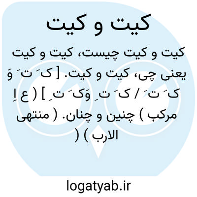 کیت و کیت. [ ک َ ت َ وَ ک َ ت َ / ک َ ت ِ وَک َ ت ِ ] ( ع اِ مرکب ) چنین و چنان. ( منتهی الارب ) ( آنندراج ) ( از اقرب الموارد ). چنین و چنان: و کان من الامر کیت و کیت؛ بود آن چنین و چنان. ( ناظم الاطباء ).