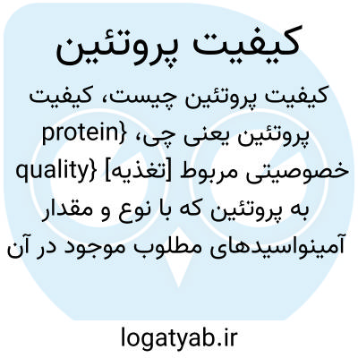 {protein quality} [تغذیه] خصوصیتی مربوط به پروتئین که با نوع و مقدار آمینواسیدهای مطلوب موجود در آن نسبت مستقیم دارد