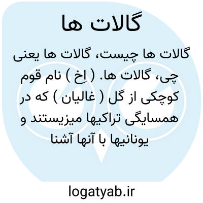 گالات ها. ( اِخ ) نام قوم کوچکی از گل ( غالیان ) که در همسایگی تراکیها میزیستند و یونانیها با آنها آشنا شدند. ( ایران باستان ص 1911 ).