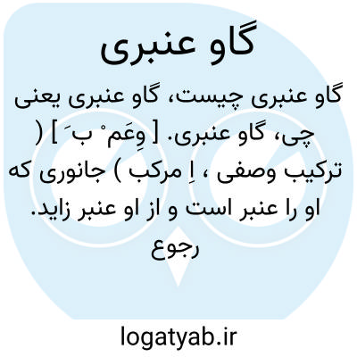 لغت نامه دهخدا گاو عنبری. [ وِعَم ْ ب َ ] ( ترکیب وصفی، اِ مرکب ) جانوری که او را عنبر است و از او عنبر زاید. رجوع به گاو عنبر شود.