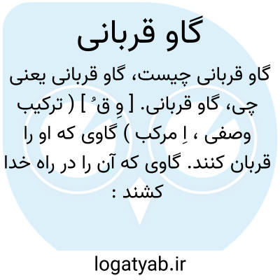 گاو قربانی. [ وِ ق ُ ] ( ترکیب وصفی، اِ مرکب ) گاوی که او را قربان کنند. گاوی که آن را در راه خدا کشند: