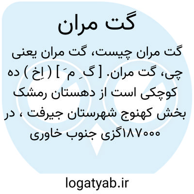 گت مران. [ گ ِ م َ ] ( اِخ ) ده کوچکی است از دهستان رمشک بخش کهنوج شهرستان جیرفت، در 187000گزی جنوب خاوری کهنوج و 15000گزی باختر راه مالرو رمشک گابریک. سکنه آن 10 تن می باشد. ( از فرهنگ جغرافیایی ایران ج 8 ).