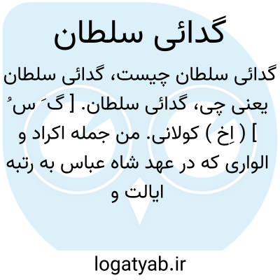 گدائی سلطان. [ گ َ س ُ ] ( اِخ ) کولانی. من جمله اکراد و الواری که در عهد شاه عباس به رتبه ایالت و خانی و سلطانی رسیده در عالم آرای عباسی ( چ تهران ص 762 ) هم ثبت شده گدائی سلطان کولانی، حاکم زنجان بوده است. ( از تاریخ کرد تألیف رشیدیاسمی صص 207 - 208 ).