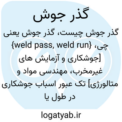 {weld pass, weld run} [جوشکاری و آزمایش های غیرمخرب، مهندسی مواد و متالورژی] تک عبور اسباب جوشکاری در طول یا عرض قطعه که در طی آن فلز جوش به طور پیوسته ذوب می شود
