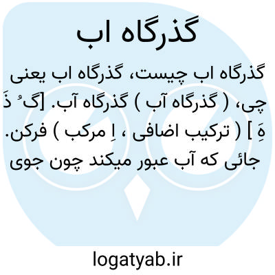 ( گذرگاه آب ) گذرگاه آب. [گ ُ ذَ هَِ ] ( ترکیب اضافی، اِ مرکب ) فرکن. جائی که آب عبور میکند چون جوی آب و مسیل. ( فرهنگ اسدی نخجوانی ). سوراخ آب. معبر. آب راهه. رجوع به گذرگاه شود.
