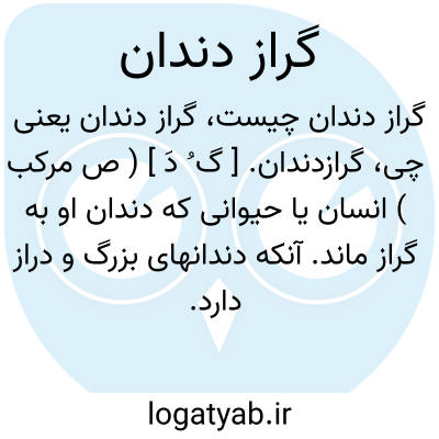 گرازدندان. [ گ ُ دَ ] ( ص مرکب ) انسان یا حیوانی که دندان او به گراز ماند. آنکه دندانهای بزرگ و دراز دارد. آنکه دندانهای سخت دراز دارد: