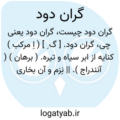 گران دود. [ گ ِ ] ( اِ مرکب ) کنایه از ابر سیاه و تیره. ( برهان ) ( آنندراج ). || نِزم و آن بخاری باشد غلیظ و ملاصق زمین. ( برهان ).
