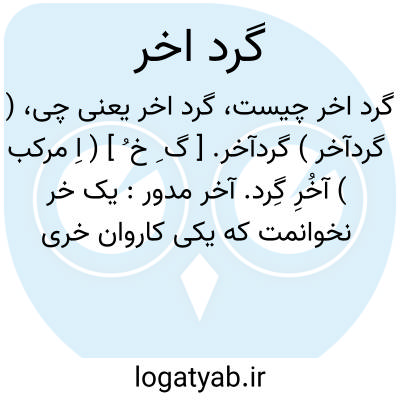 ( گرد آخر ) ( اسم ) آخر گرد آخر مدور: یک خر نخوانمت که یکی کاروان خری گرد آخرت پر از علف کفر و زند قه. ( سوزنی )