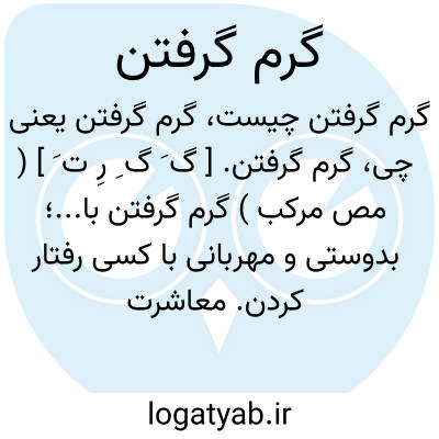 گرم گرفتن. [ گ َ گ ِ رِ ت َ ] ( مص مرکب ) گرم گرفتن با...؛ بدوستی و مهربانی با کسی رفتار کردن. معاشرت کردن.