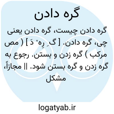 گره دادن. [ گ ِ رِه ْ دَ ] ( مص مرکب ) گره زدن و بستن. رجوع به گره زدن و گره بستن شود. || مجازاً، مشکل کردن کار.