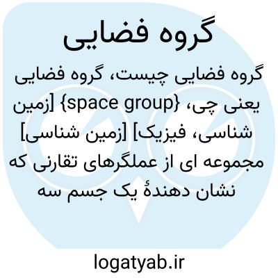 {space group} [زمین شناسی، فیزیک] [زمین شناسی] مجموعه ای از عملگرهای تقارنی که نشان دهندۀ یک جسم سه بعدی دوره ای هستند [فیزیک] مجموعه ای از عملیات تقارن که نقش منظم تکرارشونده در بلور را بدون تغییر باقی می گذارد