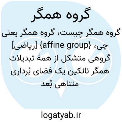{affine group} [ریاضی] گروهی متشکل از همۀ تبدیلات همگر ناتکین یک فضای بُرداری متناهی بُعد