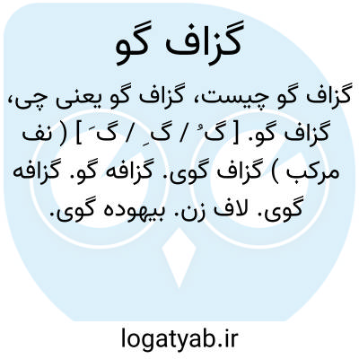 گزاف گو. [ گ ُ / گ ِ / گ َ ] ( نف مرکب ) گزاف گوی. گزافه گو. گزافه گوی. لاف زن. بیهوده گوی. خراص. ( ملخص اللغات حسن خطیب ): خردمندان دانستندی که نه چنان است و سری می جنبانیدند و پوشیده خنده میزدندی که وی گزافگوی است. ( تاریخ بیهقی چ ادیب ص 176 ).