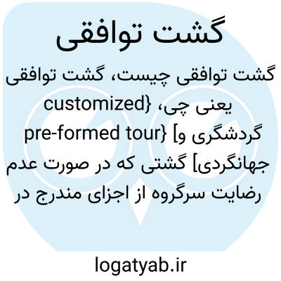 {customized pre-formed tour} [گردشگری و جهانگردی] گشتی که در صورت عدم رضایت سرگروه از اجزای مندرج در دفترک گشت، با توافق گشت پرداز تغییراتی در آن داده می شود