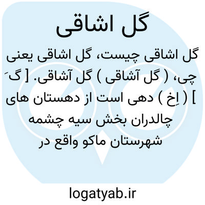 ( گل آشاقی ) گل آشاقی. [ گ َ ] ( اِخ ) دهی است از دهستان های چالدران بخش سیه چشمه شهرستان ماکو واقع در 5500گزی شمال باختری سیه چشمه، در مسیر راه شوسه سیه چشمه به کلیاکندی. هوای آن معتدل و دارای 245 تن سکنه است.آب آن از چشمه و محصول آن غلات است. شغل اهالی زراعت و گله داری و صنایع دستی زنان آنجا جاجیم بافی است. راه شوسه نیز دارد. ( از فرهنگ جغرافیایی ایران ج 4 ).
