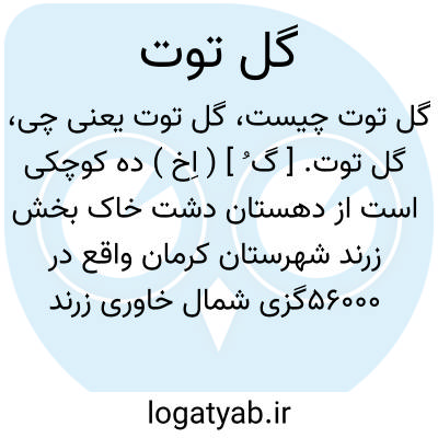 گل توت. [ گ ُ ] ( اِخ ) ده کوچکی است از دهستان دشت خاک بخش زرند شهرستان کرمان واقع در 56000گزی شمال خاوری زرند و 15000گزی خاور فرعی زرند به راور. دارای یک خانوار است. ( از فرهنگ جغرافیایی ایران ج 8 ).