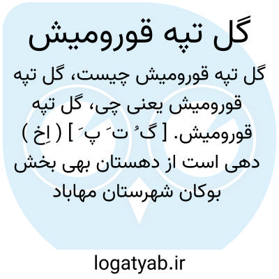 گل تپه قورومیش. [ گ ُ ت َ پ َ ] ( اِخ ) دهی است از دهستان بهی بخش بوکان شهرستان مهاباد واقع در 17هزارگزی شمال خاوری راه شوسه بوکان و 11هزارگزی خاور راه شوسه بوکان به میاندوآب. هوای آن معتدل و دارای 561 تن سکنه است. آب آن از زرینه رود و محصول آن غلات، چغندر، توتون و حبوبات است. شغل اهالی زراعت و گله داری و صنایع دستی آنان جاجیم بافی است. راه مالرو دارد. ( از فرهنگ جغرافیایی ایران ج 4 ).