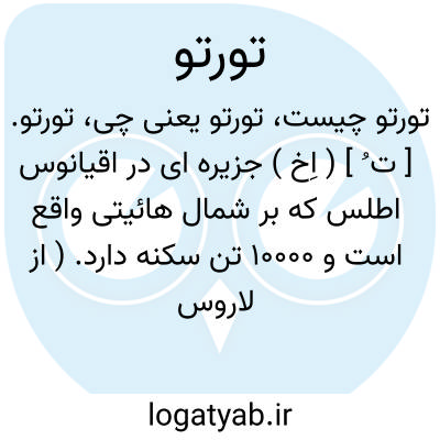 تورتو. [ ت ُ ] ( اِخ ) جزیره ای در اقیانوس اطلس که بر شمال هائیتی واقع است و 10000 تن سکنه دارد. ( از لاروس ).