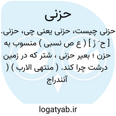 حزنی. [ ح َ زَ ] ( ع ص نسبی ) منسوب به حزن؛ بعیر حزنی، شتر که در زمین درشت چرا کند. ( منتهی الارب ) ( آنندراج ).
