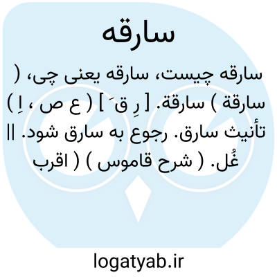 ( سارقة ) سارقة. [ رِ ق َ ] ( ع ص، اِ ) تأنیث سارق. رجوع به سارق شود. || غُل. ( شرح قاموس ) ( اقرب الموارد ).