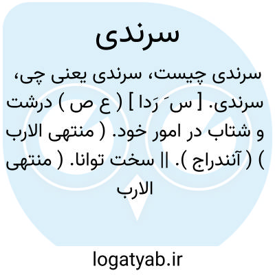 سرندی. [ س َ رَدا ] ( ع ص ) درشت و شتاب در امور خود. ( منتهی الارب ) ( آنندراج ). || سخت توانا. ( منتهی الارب ).