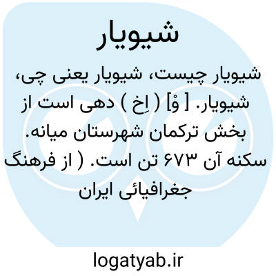 شیویار. [ وْ] ( اِخ ) دهی است از بخش ترکمان شهرستان میانه. سکنه آن 673 تن است. ( از فرهنگ جغرافیائی ایران ج 4 ).