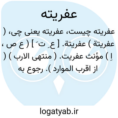 ( عفریتة ) عفریتة. [ ع ِ ت َ ] ( ع ص، اِ ) مؤنث عفریت. ( منتهی الارب ) ( از اقرب الموارد ). رجوع به عفریت شود.