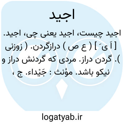 اجید. [ اَ ی َ ] ( ع ص ) درازگردن. ( زوزنی ). گردن دراز. مردی که گردنش دراز و نیکو باشد. مؤنث: جَیْداء. ج، جید.