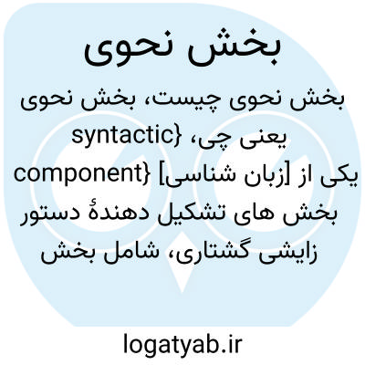 {syntactic component} [زبان شناسی] یکی از بخش های تشکیل دهندۀ دستور زایشی گشتاری، شامل بخش پایه و بخش گشتاری