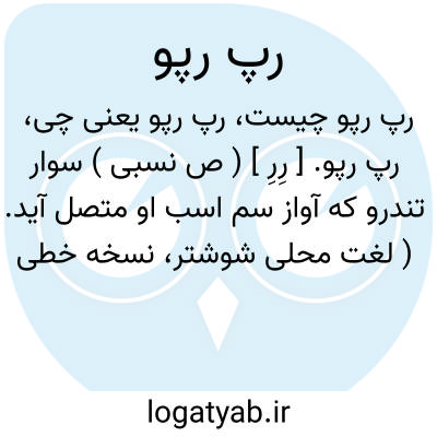 رپ رپو. [ رِرِ ] ( ص نسبی ) سوار تندرو که آواز سم اسب او متصل آید. ( لغت محلی شوشتر، نسخه خطی کتابخانه مؤلف ).